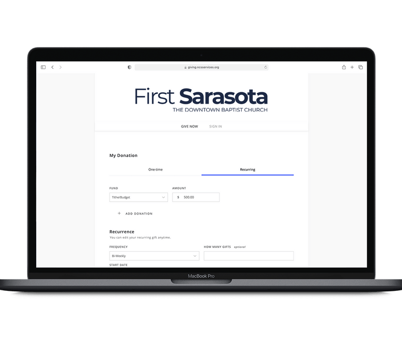 First Sarasota has moved to a new online giving platform to make giving easier and more secure for you! Church Center is a mobile app and web experience where you can explore, engage, and get involved throughout the week-including online giving.